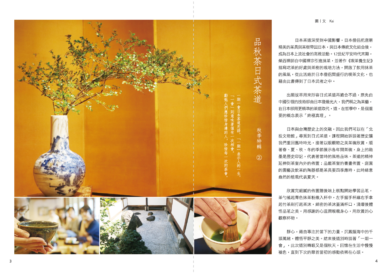 「品」之於人生是必要,感官上的滿足、心靈上的富足皆是「品」的美妙之處。畢竟生活在這世上,喜、怒、哀、樂總如雪片般飛來,光是帥氣地接招還不夠,總要找到些輪廓好好品賞一番。適逢秋季,正是景物轉移的時分,品秋茶、品秋食、賞秋鳥都是那麼愜意和自然,急躁的心緒也隨著怡人的氣溫漸漸緩和平靜,讓《日日好日》來發掘生活中的美,一探日式茶道、古玩偉士牌收藏家莫瑞、異地游子秋法生活、借貸百萬流浪去的小醫師的故事,滿足心中對優雅的嚮往。